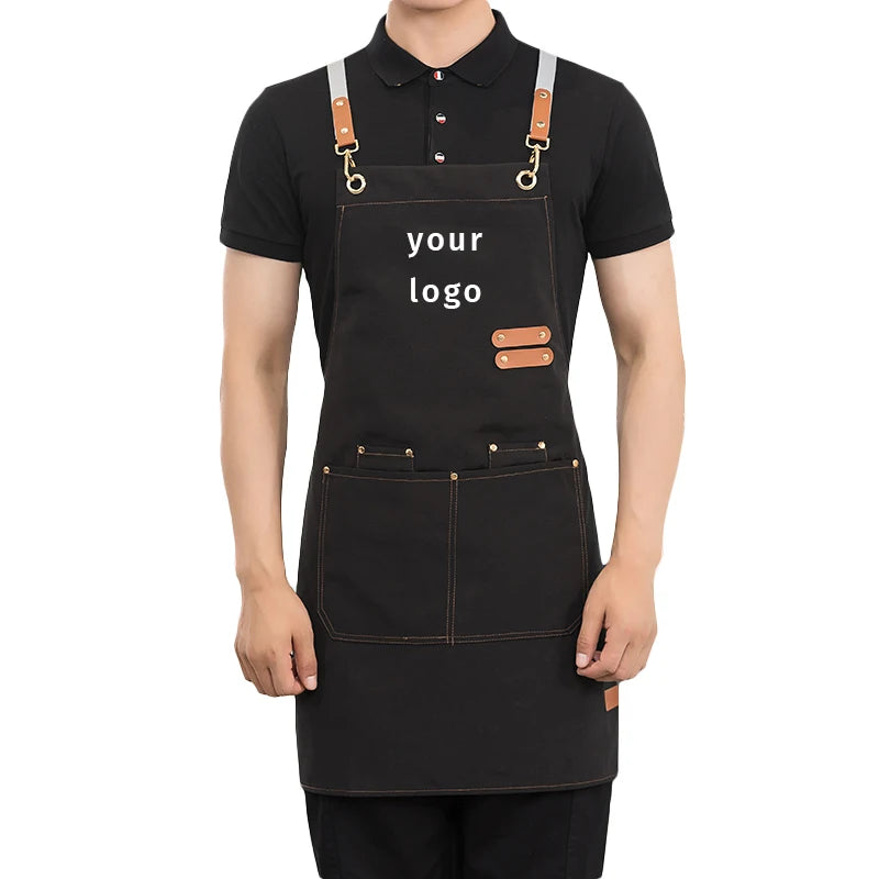 Men's Women's Kitchen Apron Custom Logo Catering Server Work Aprons Nails Hairdressing Mandil Restaurant Cafes Bar Waiter Bibs