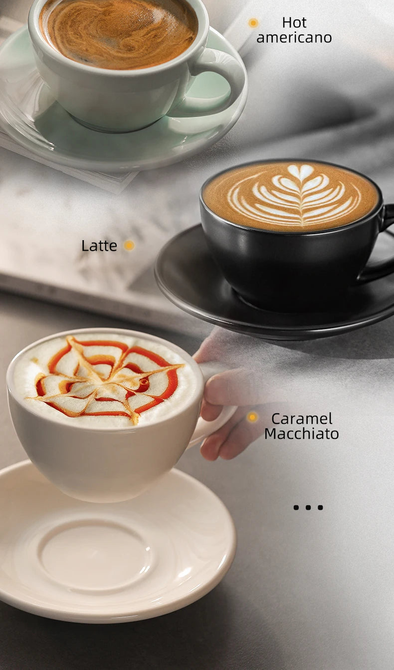 MHW-3BOMBER 280ML Esspresso Cup Saucer & Spoon Ceramic Tea Mugs Set Home Kitchen Accessories Chritmas Gifts for Coffee Lovers