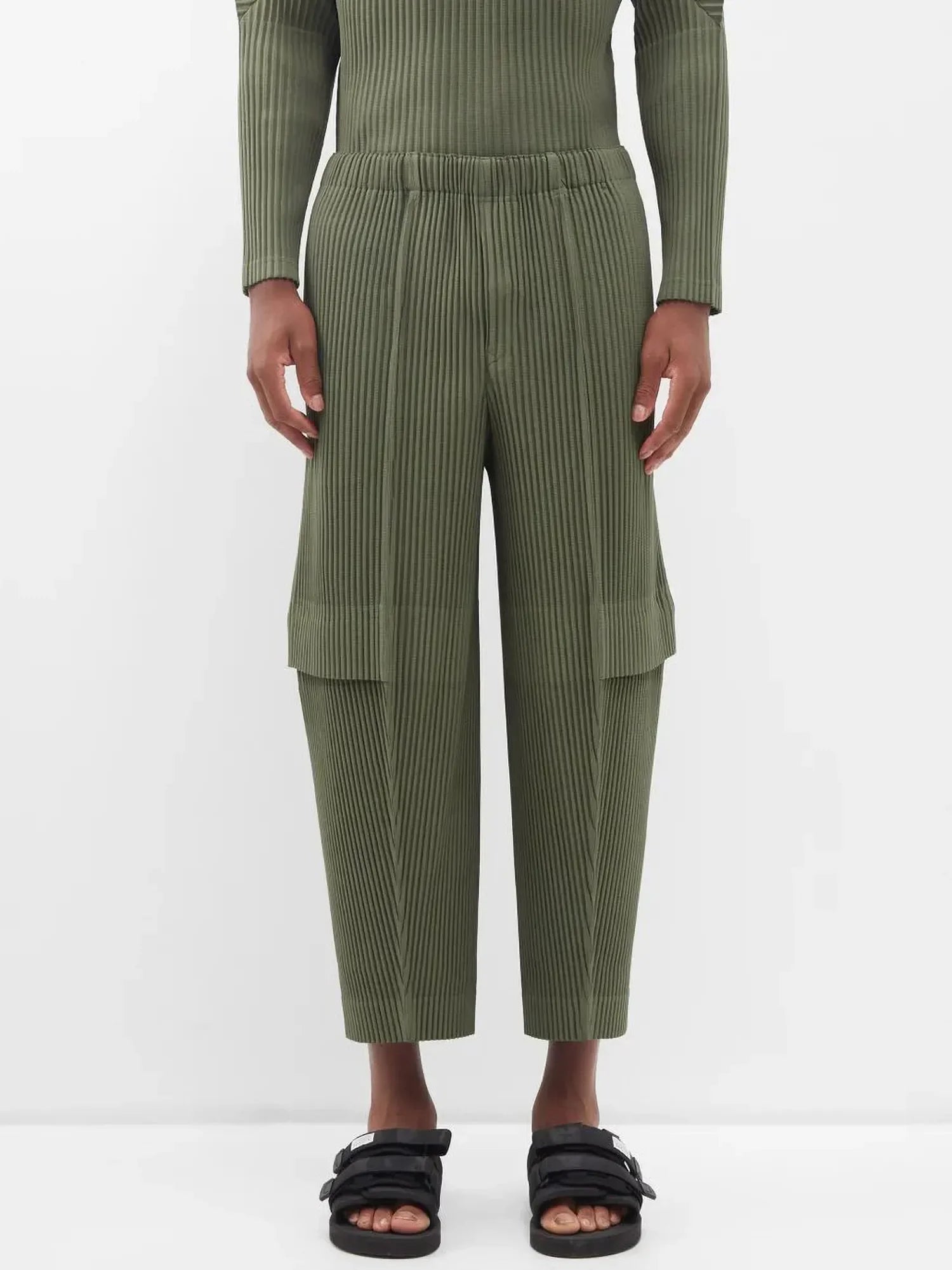 Miyake Pleated Men Cargo Pants Pleated Straight Pants Loose Overalls Men Baggy Black Trousers Fashion Casual Streetwear Pants
