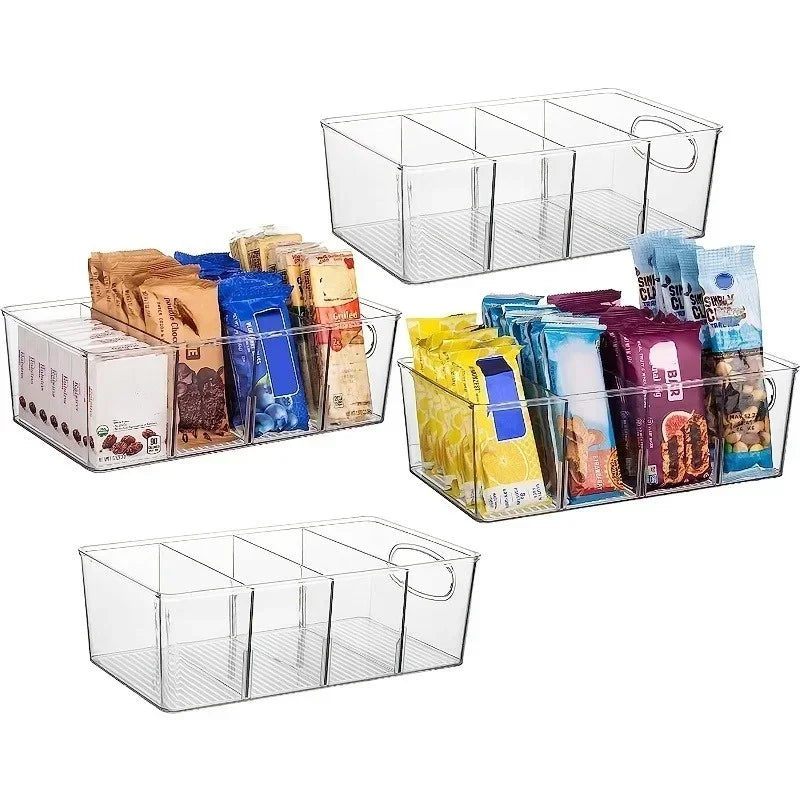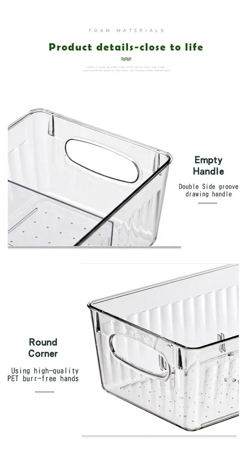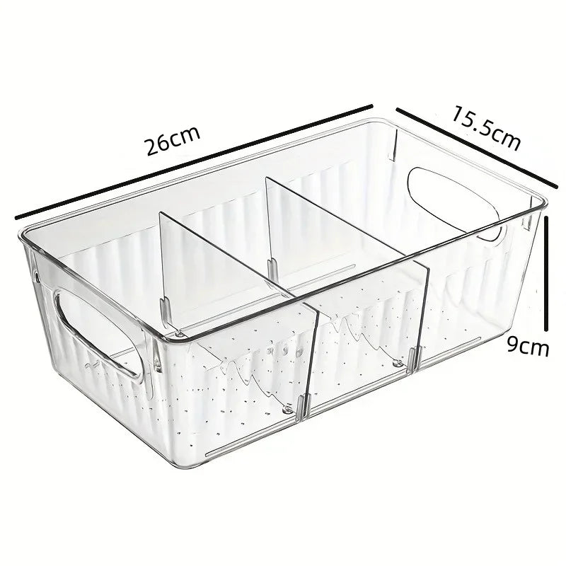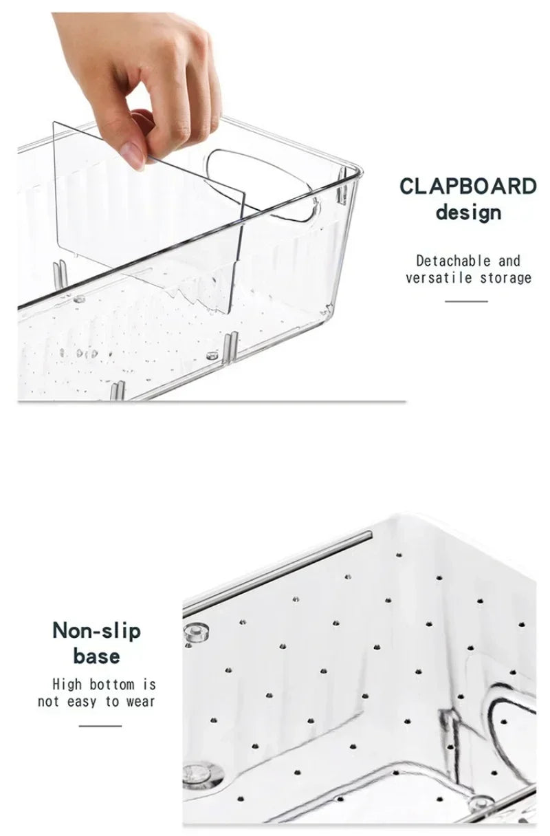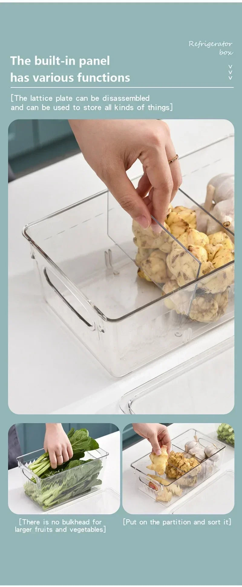 New Kitchen Refrigerator Organizer Bin Clear Plastic Food Storage Fridge Storage Box with Divider Freezer Pantry Organizer
