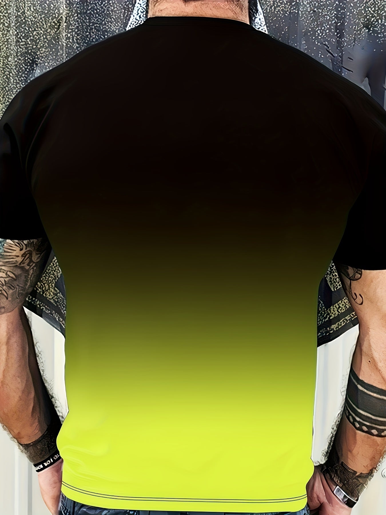 Ombre 2Pcs Trendy Outfits For Men, Casual Crew Neck Short Sleeve T-shirt And Drawstring Shorts Set For Summer, Men's Clothing Vacation Workout