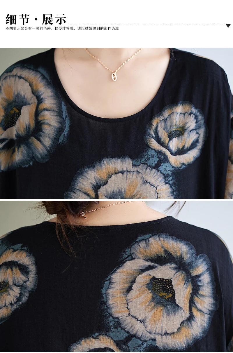 Oversized Summer Bohemian Style Long Dress Women Ruffle Pleated Fashion Flower Print Ladies Dresses Loose Casual Woman Dress