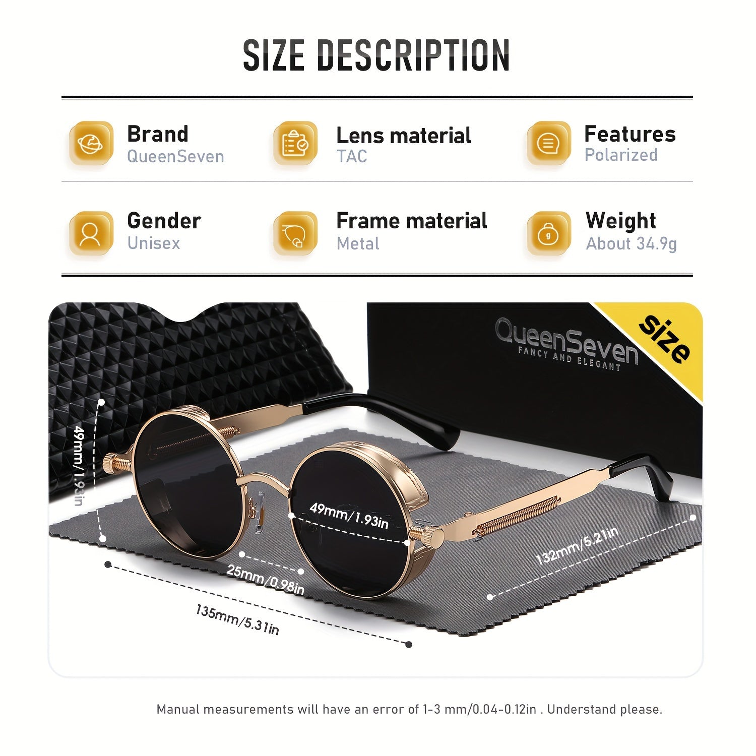 QueenSeven Retro Round Frame Polarized Fashion Glasses - Rose Golden Zinc Alloy, Black TAC Lenses, UV Protection, Stylish Punk Design for Driving & Outdoor Activities, Outdoor Eyewear | Elegant Accessories | Luxury Fashion Glasses