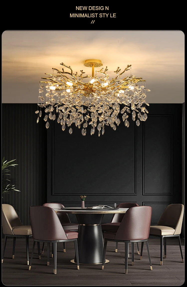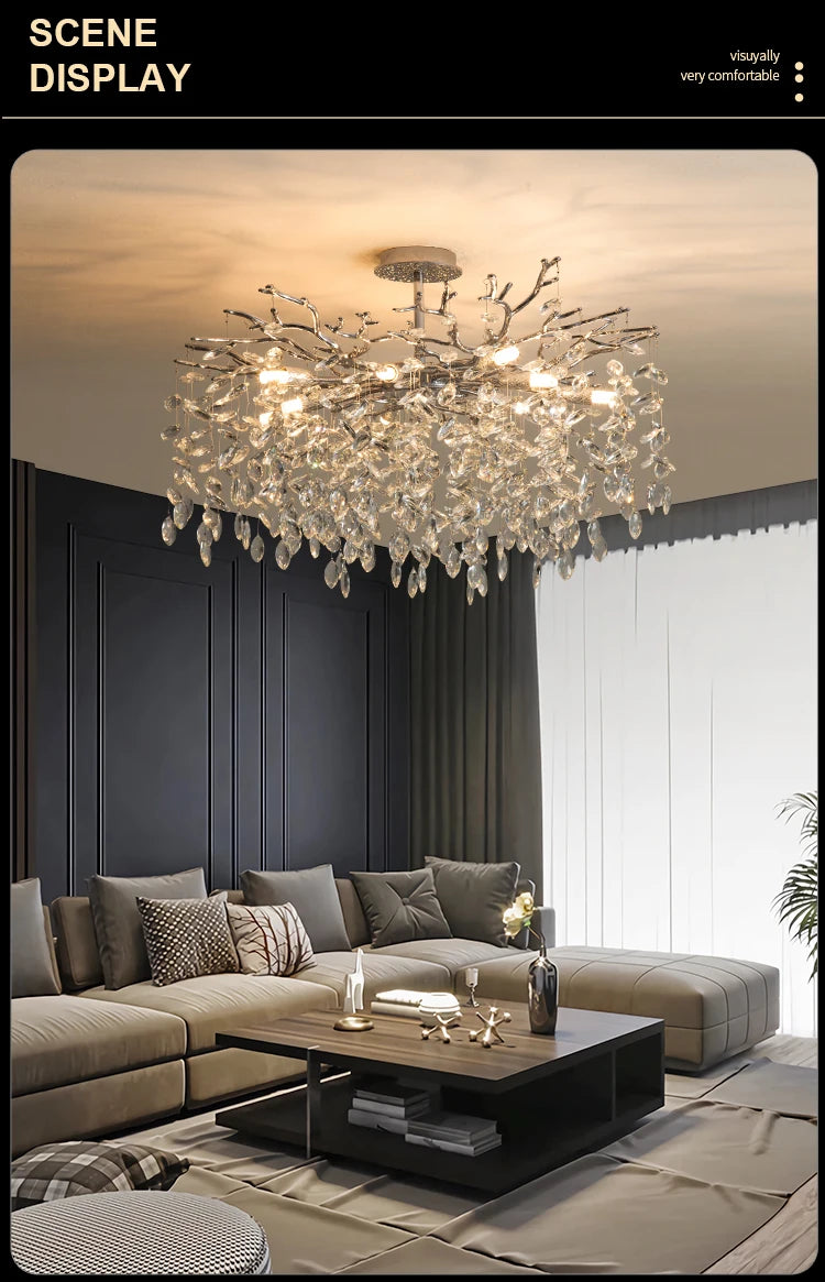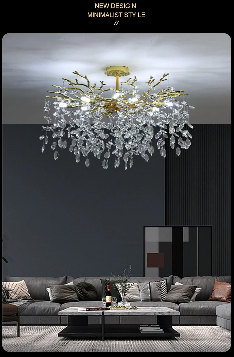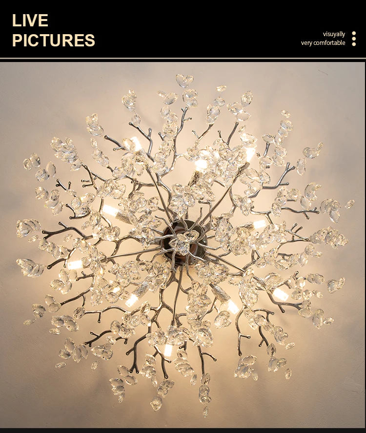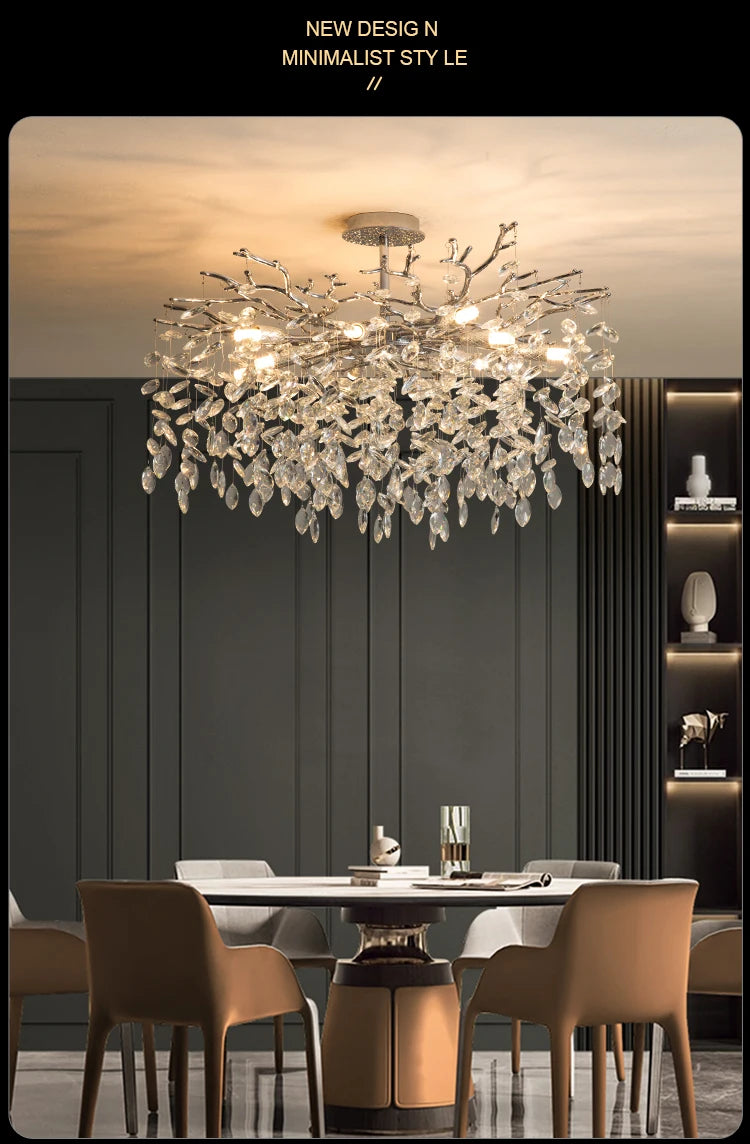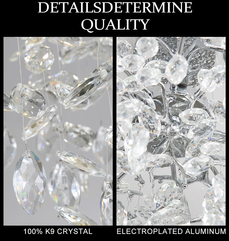 Round Chrome K9 Crystal Ceiling Chandelier For Bedroom Living Dining Room Kitchen Table Modern Crystal Branch Pendant Chandelier