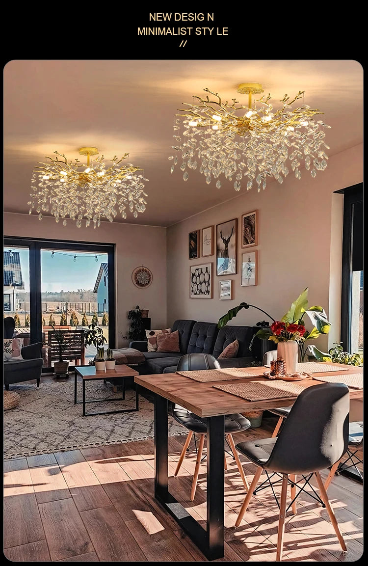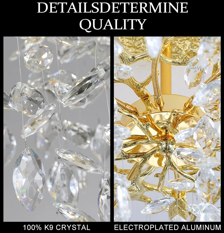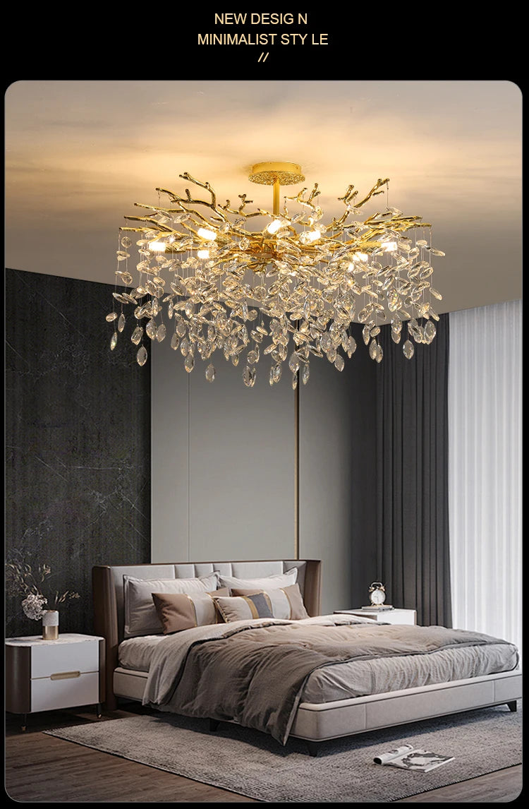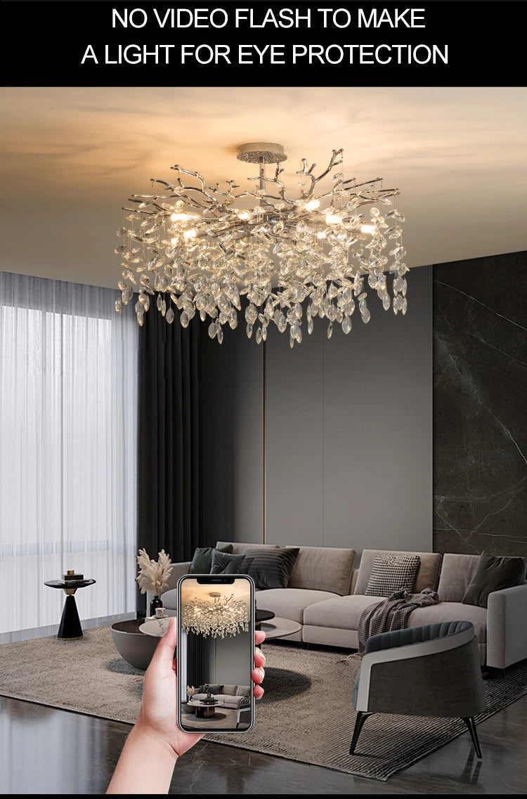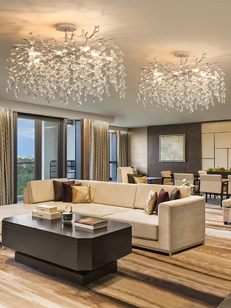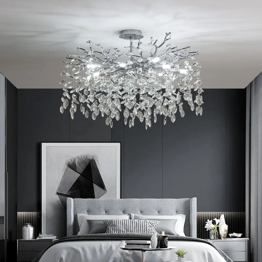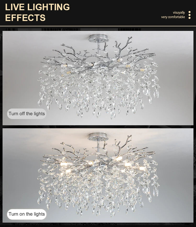 Round Chrome K9 Crystal Ceiling Chandelier For Bedroom Living Dining Room Kitchen Table Modern Crystal Branch Pendant Chandelier