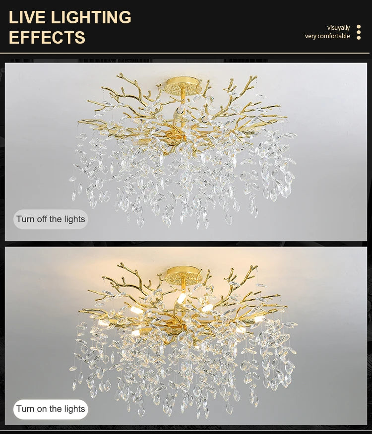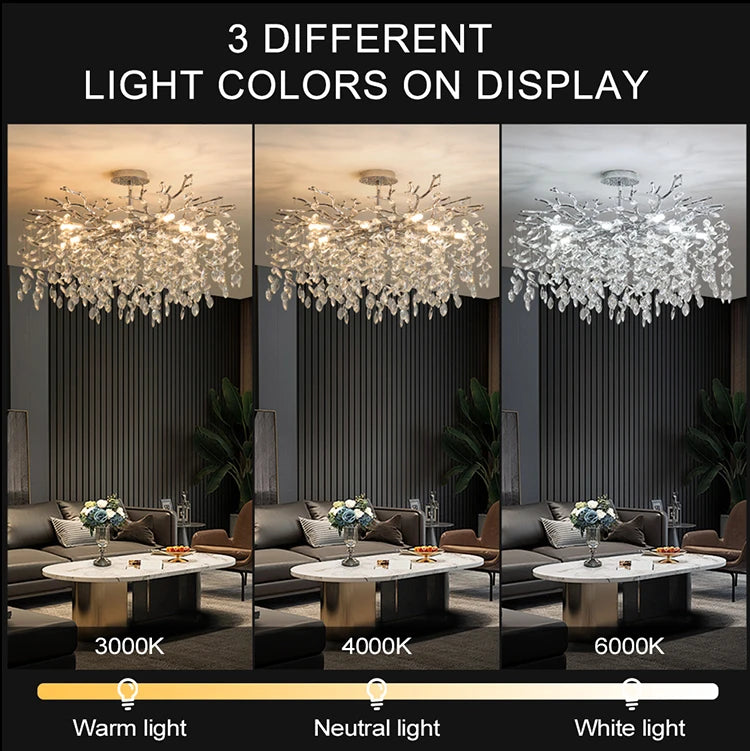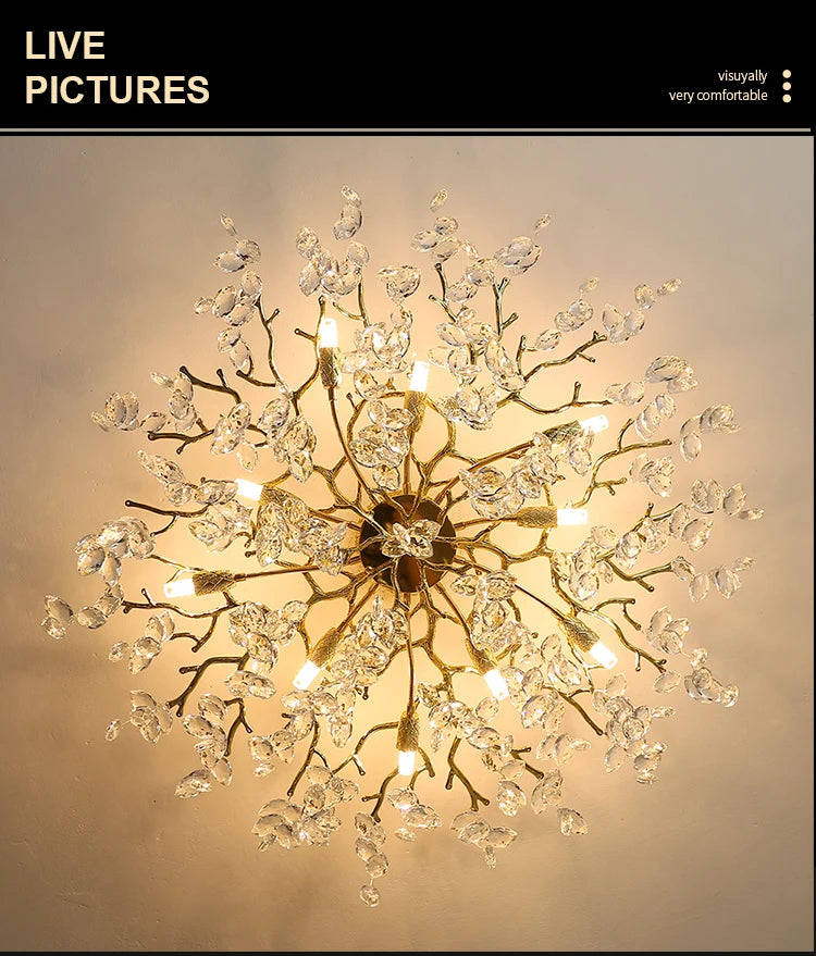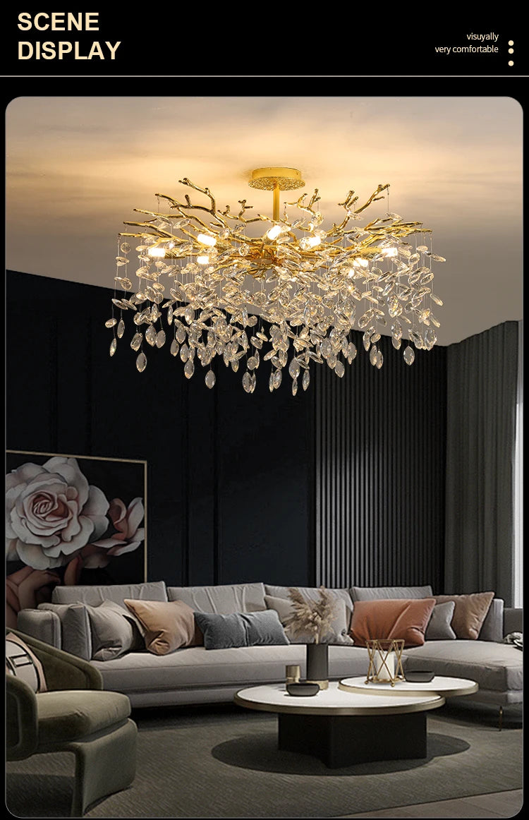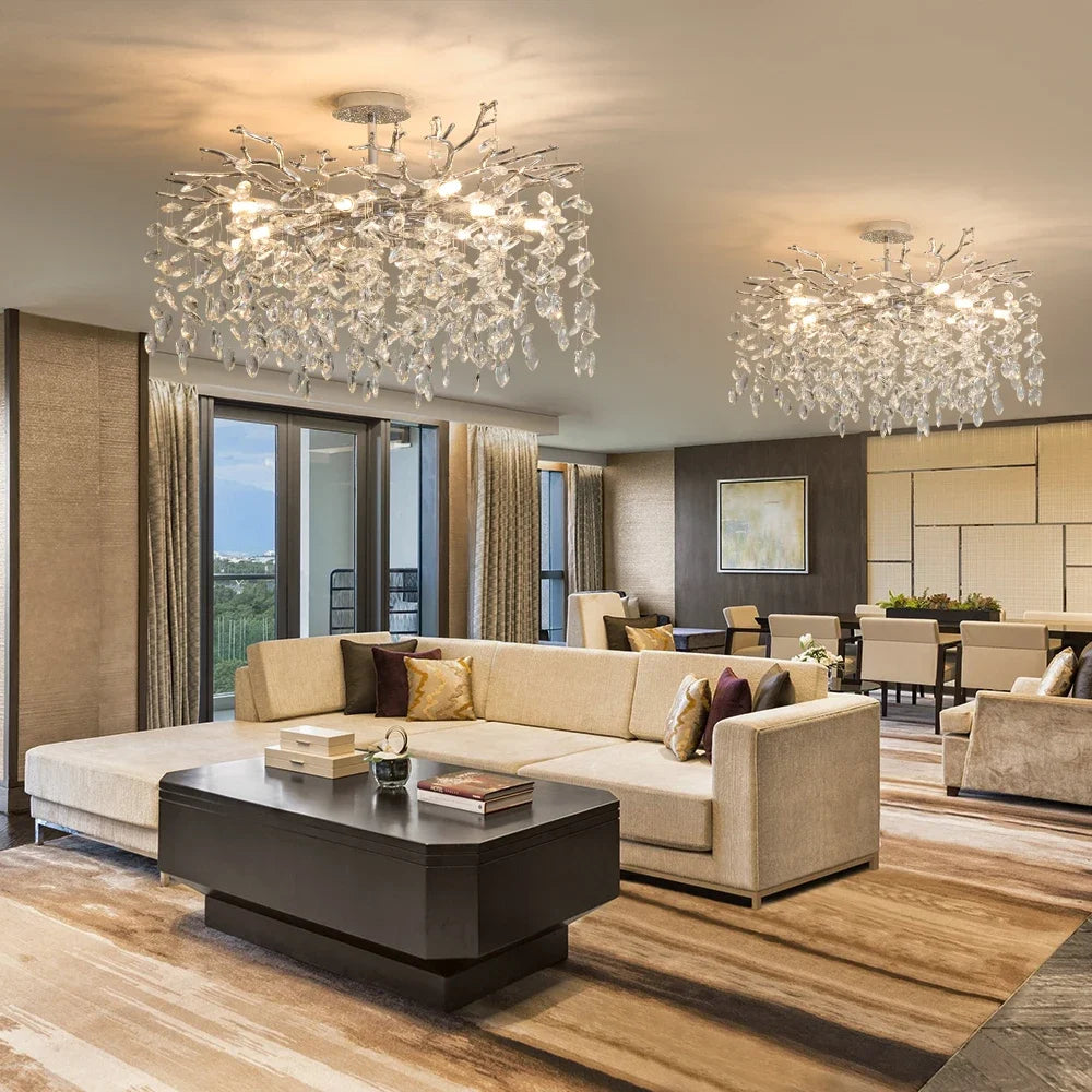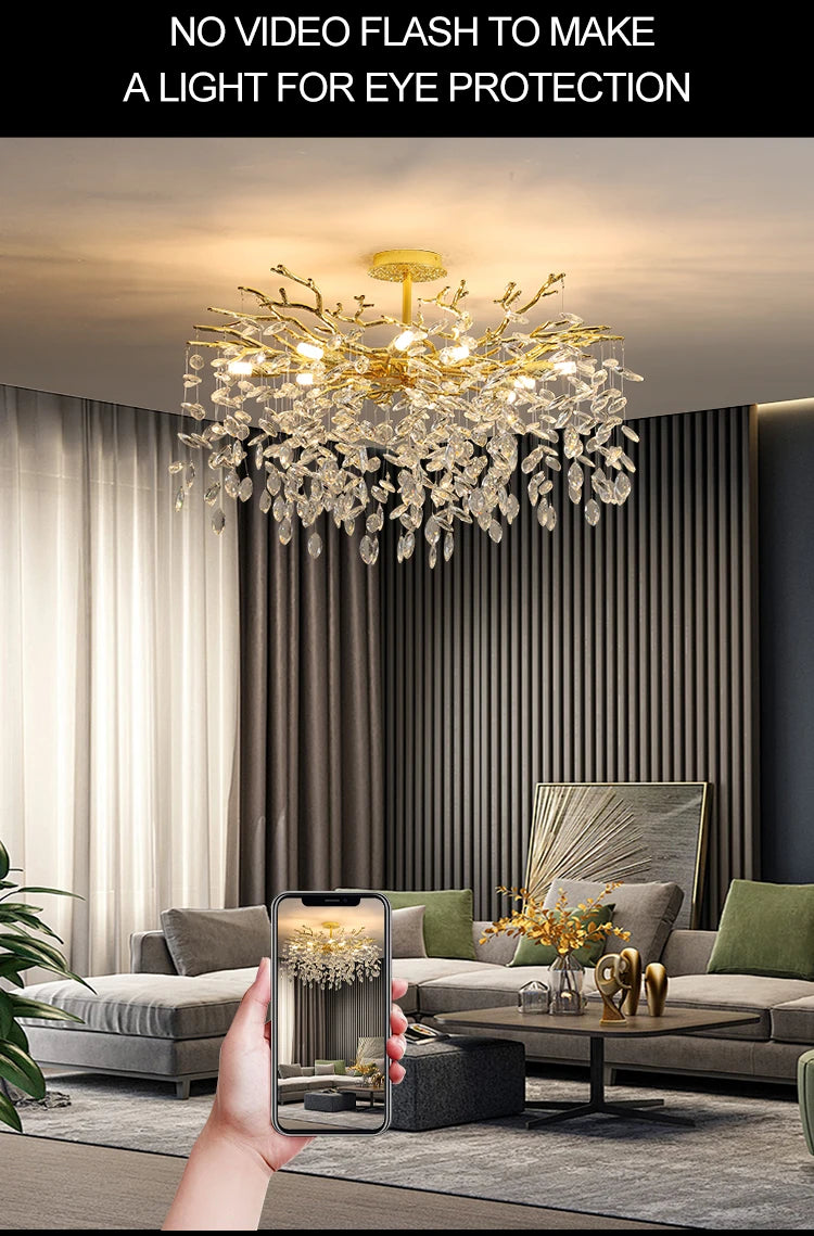 Round Chrome K9 Crystal Ceiling Chandelier For Bedroom Living Dining Room Kitchen Table Modern Crystal Branch Pendant Chandelier