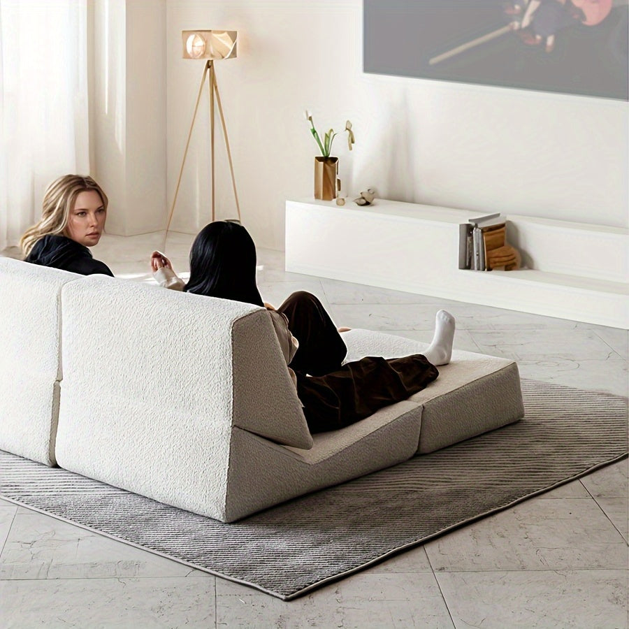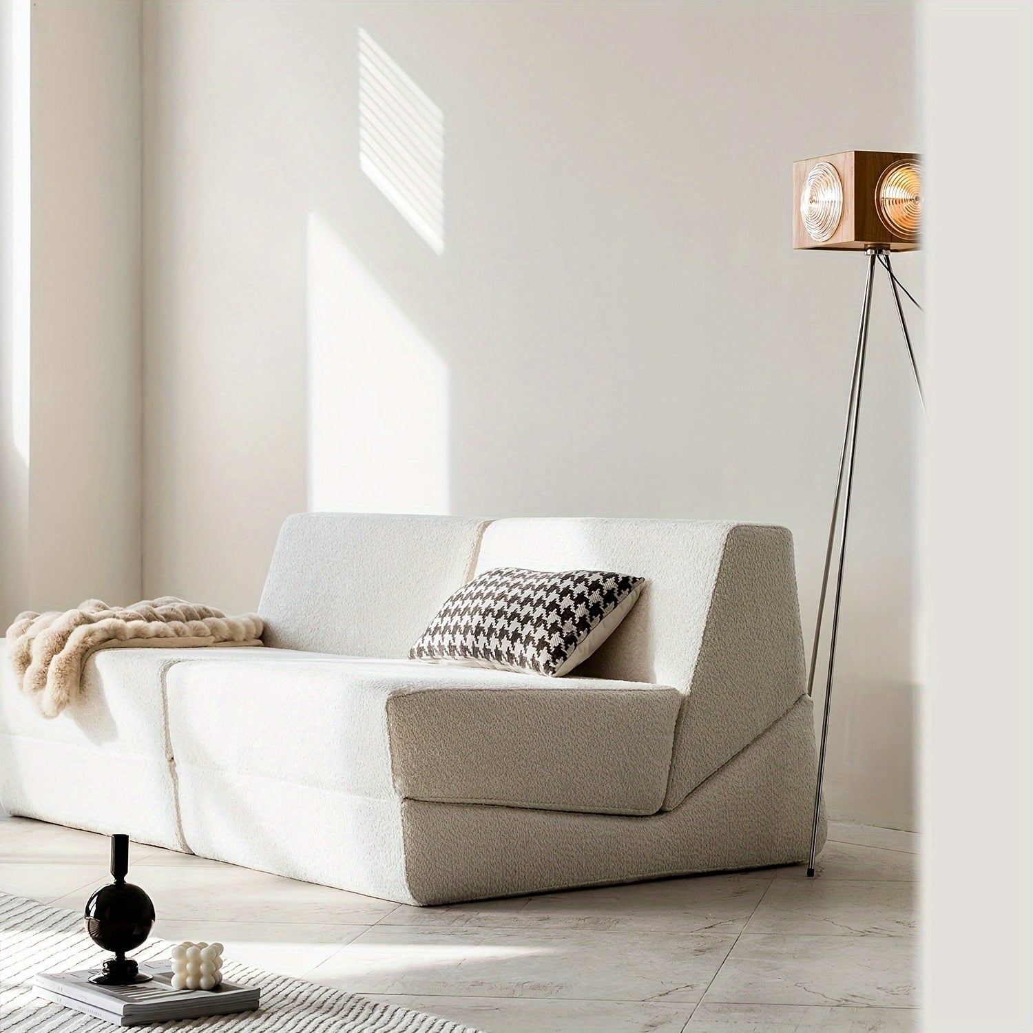 Space Memory Foam Cube Lazy Sofa - Foldable Folding Bed with Anti-Collapse System, Portable for Living Room, Bedroom & Study | White, No Assembly Required, Multi-Purpose Use, Space-Saving Furniture, Minimalist Design, Collapsible Sofa Bed | Minimali