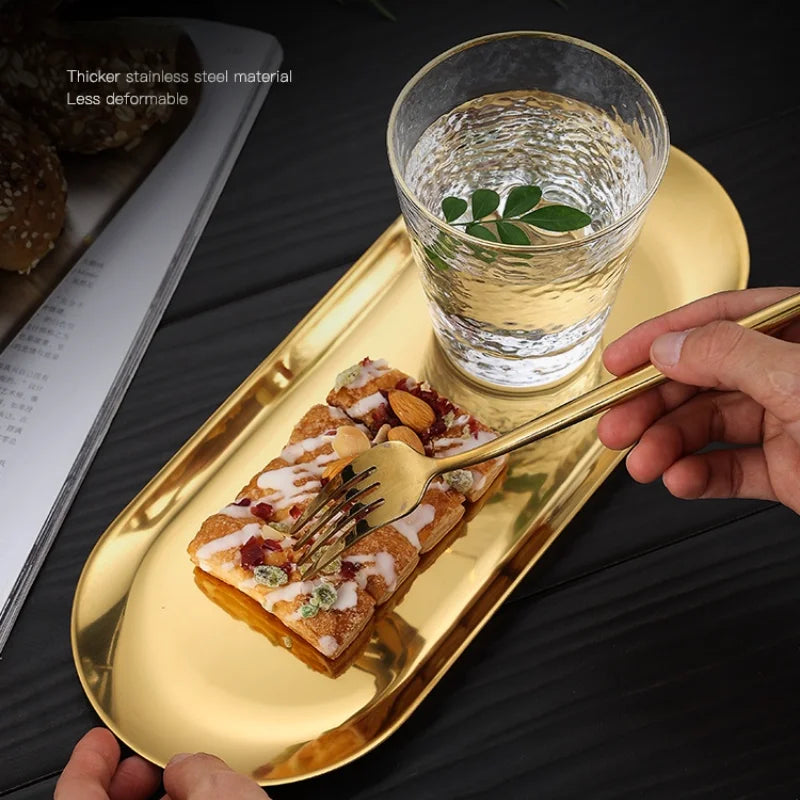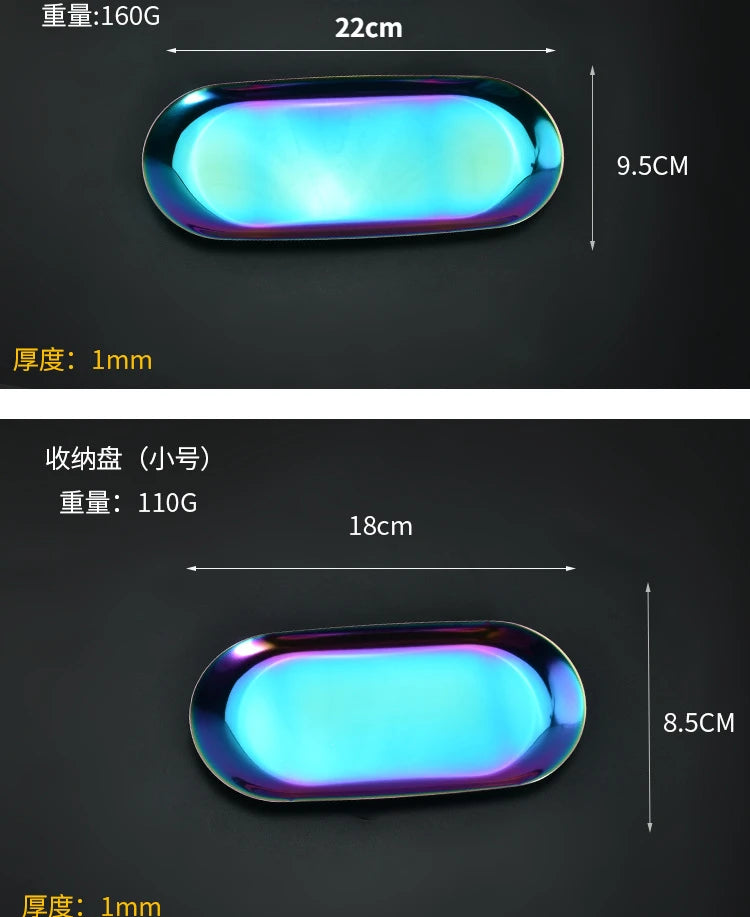 Stainless Steel European Jewelry Storage Tray Metal Cosmetic Storage Oval Cake Fruit Dessert Tray Snack Plate Kitchen Organizer