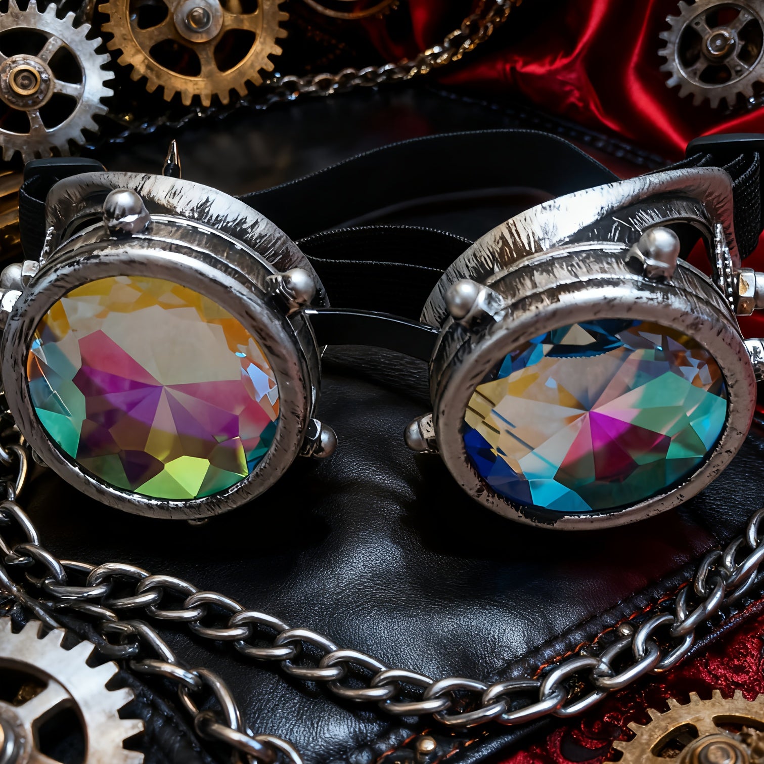 Steampunk Retro Goggles with kaleidoscope lenses - Adjustable Vintage Pilot Style Accessory for Cosplay, Themed Parties, and Unique Gifts