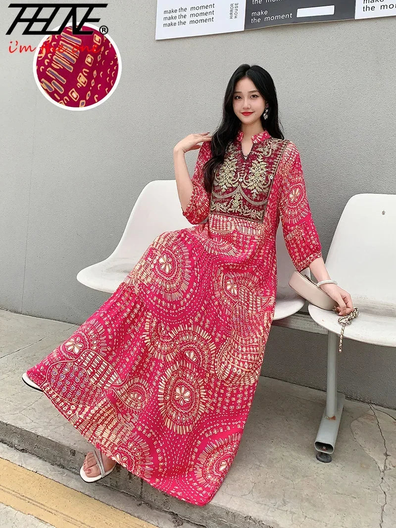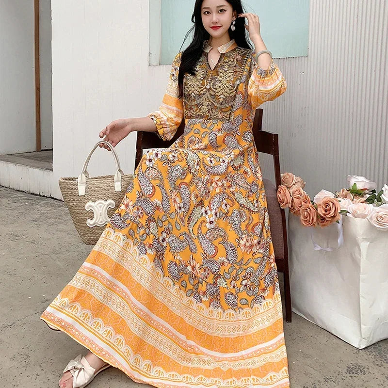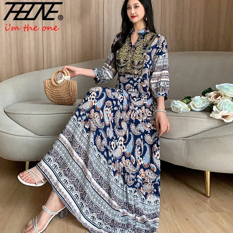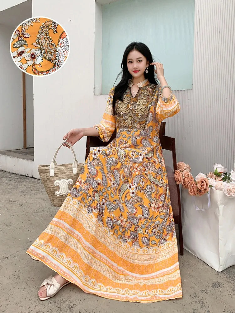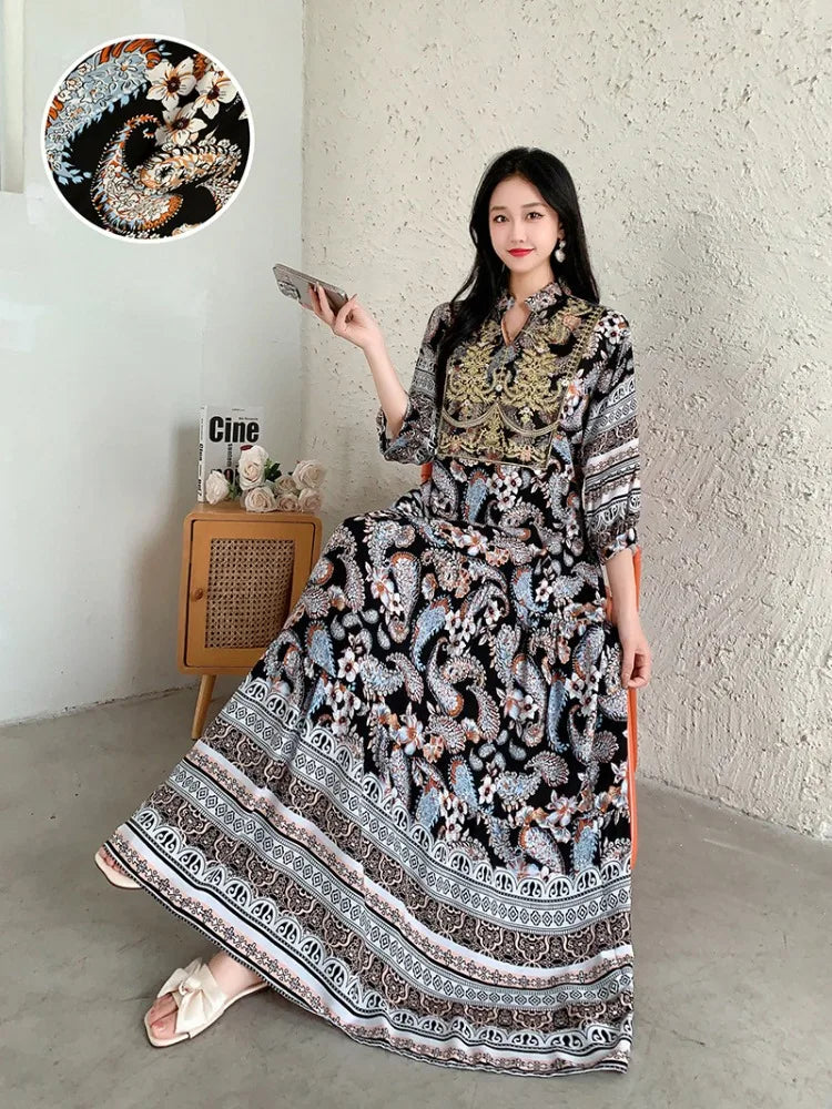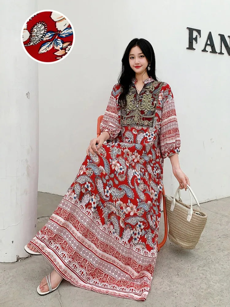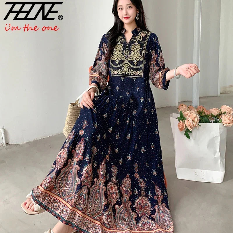 Summer Autumn Robe Maxi Long Dress Women Indian Clothes Boho Cotton Print Floral Boho Korean Style Fashion Casual Vestido Largos