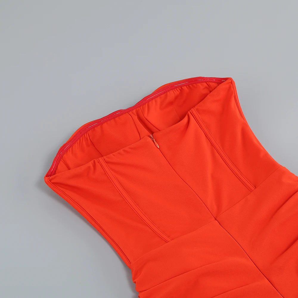 Summer New women's Sexy breast wrapping,backless Dress, Red Wrinkled Hem Split Party ceremonial dress Long, Dress