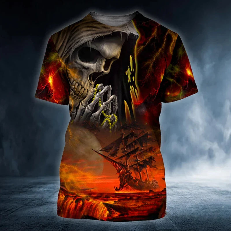 Summer Retro T Shirt Men 3D Printed Skull Angel Graphic Tees Fashion Clothes Oversized Streetwear O Neck Short Sleeve Man Tops