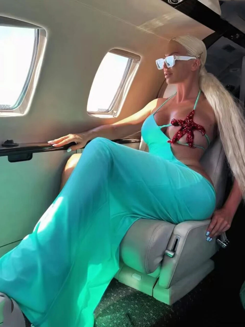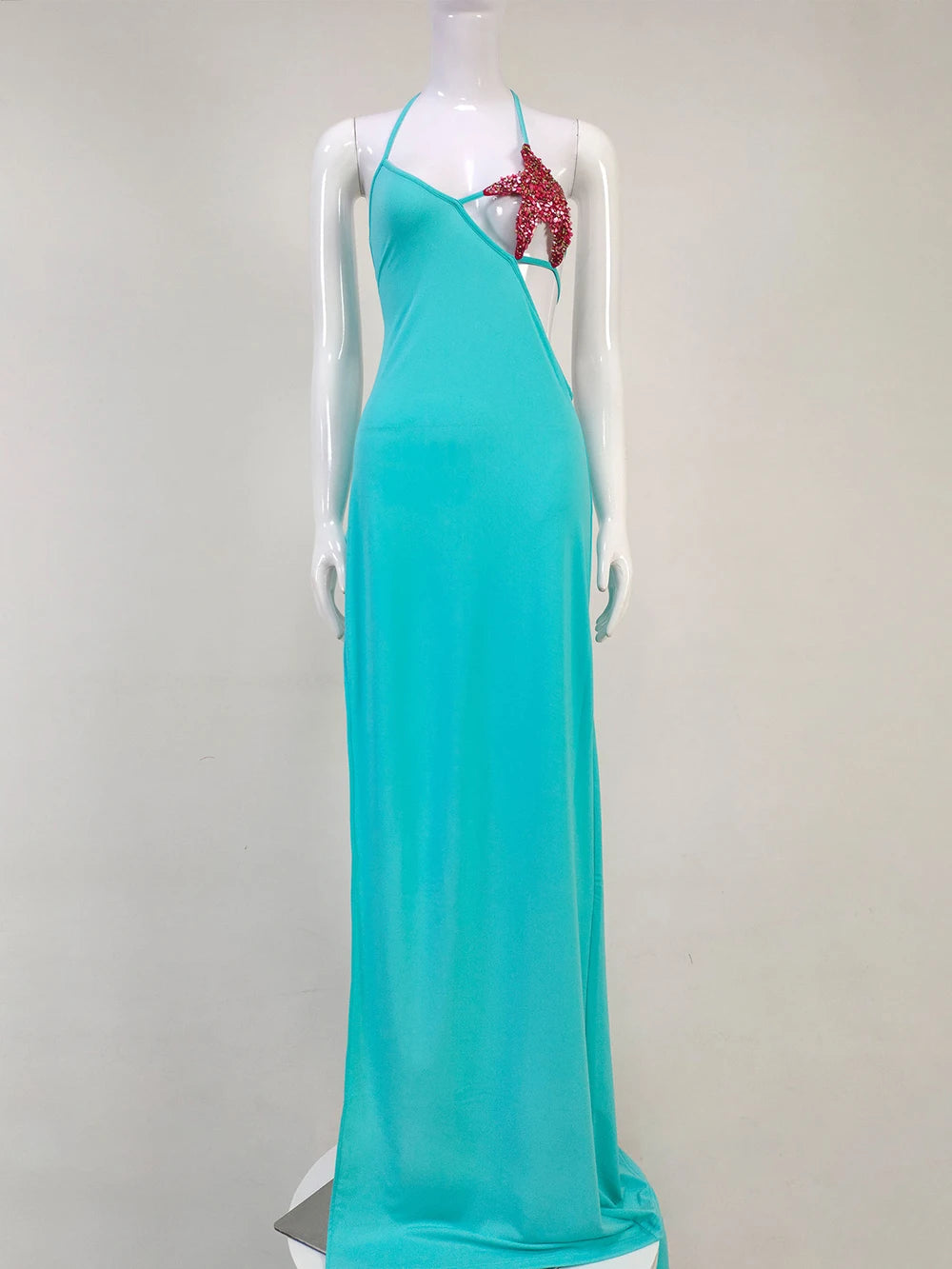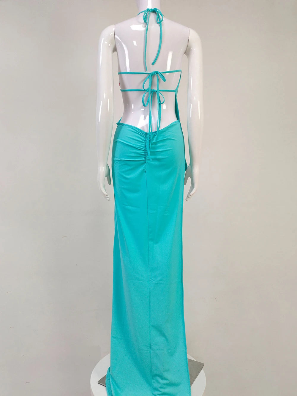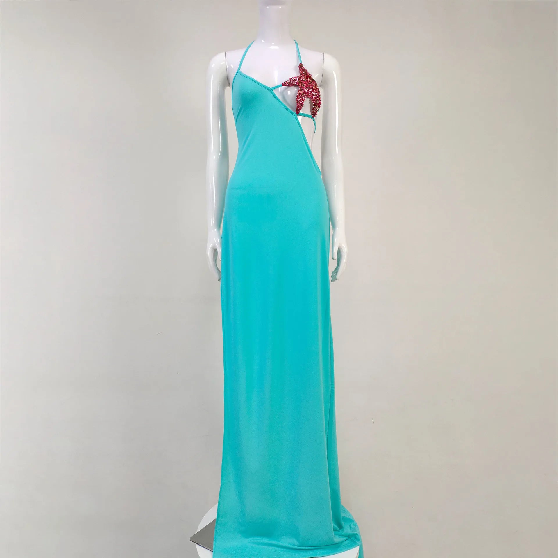 Tosca Starfish Bustier Split Maxi Dress Spaghetti Strap Backless Design Celebrity Party Vacation Sexy Lace-Up Maxi Long Dress