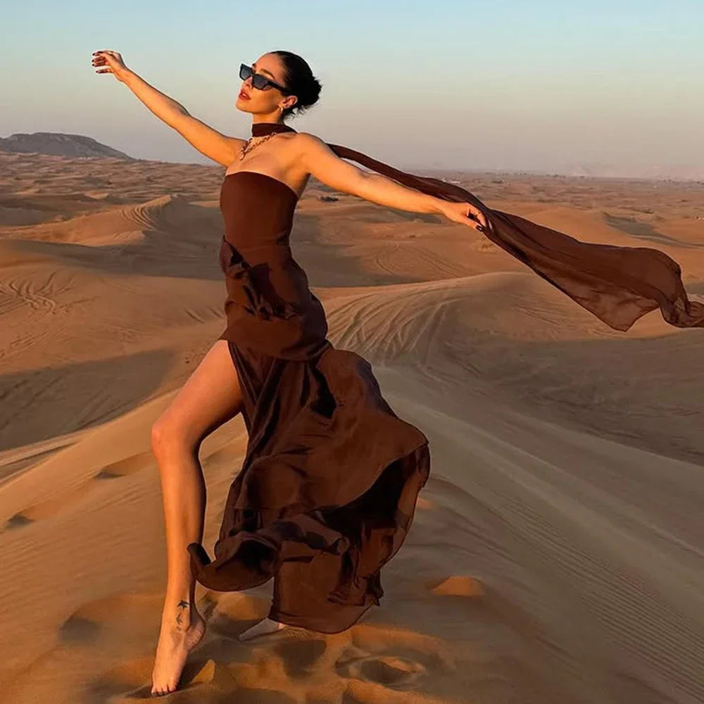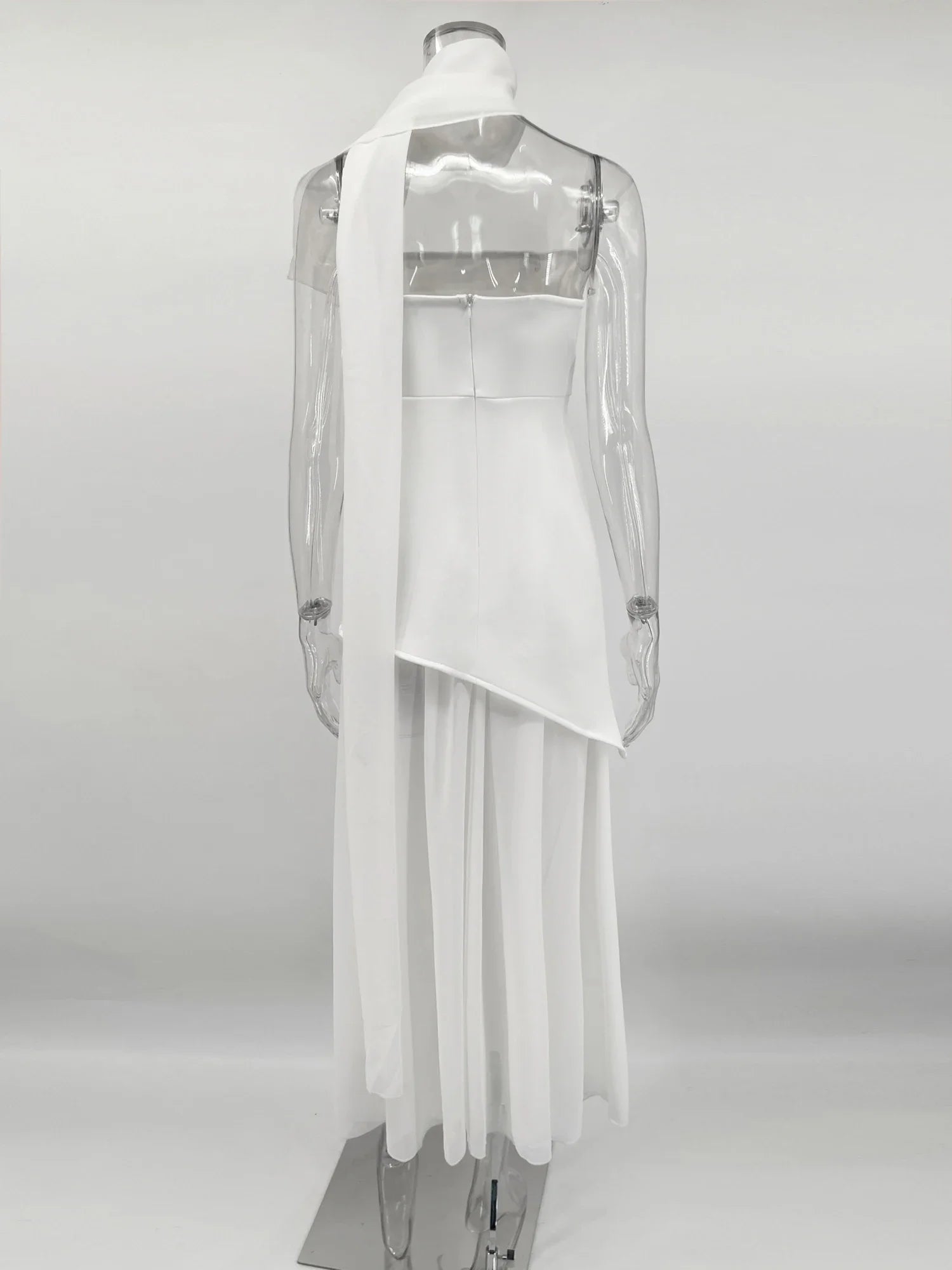 Tuularose Fashion Ribbon Long Dress Women's 2025 Summer White Backless Sleeveless Vacation Dress Elegant Slit Slim Long Dresses