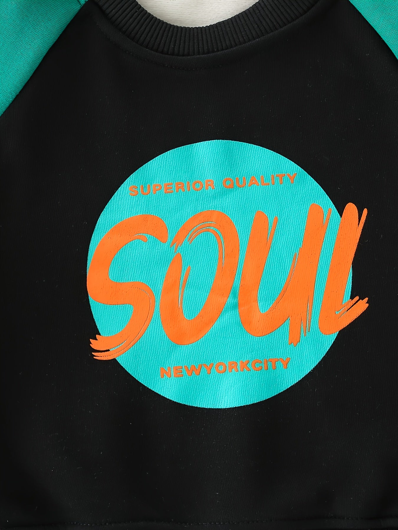 Two-Piece Boys' Fleece-Lined Sweatshirt Set with Letter Print - Casual Long Sleeve Pullover & Pants, Regular Fit, Spring/Fall Collection, Perfect for Small to Medium Youngsters, Casual Wear|Playful Design|Fleece Lined Pants, Sweater Pants, for Outdoor