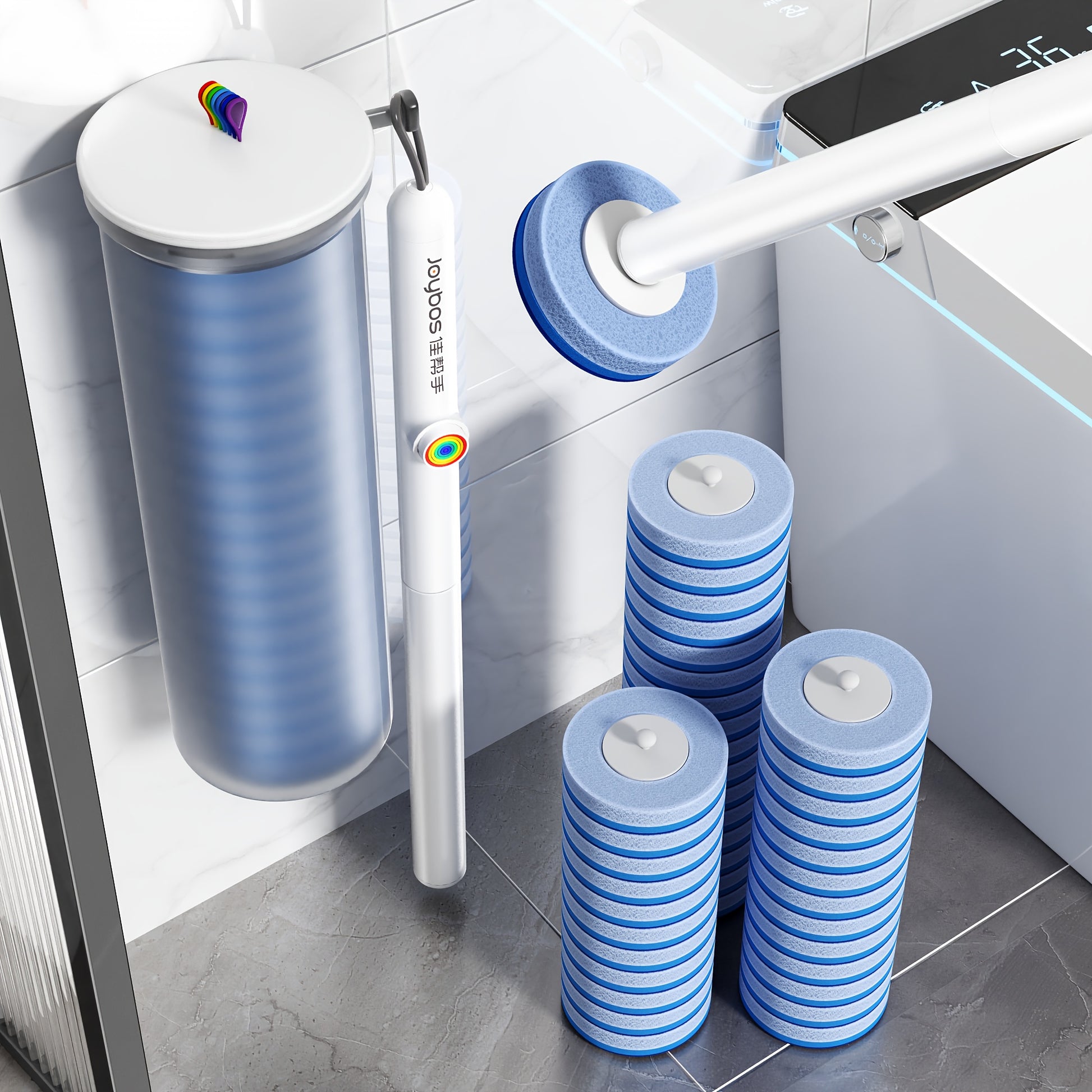 Wall-Mounted Disposable Toilet Brush with 18 Replacement Brushes. No Dead Corners, Wall-Mounted Long Handle for More Efficient Cleaning, Disposable Toilet Brush. Household Dead Corner Bathroom Toilet Cleaning Brush