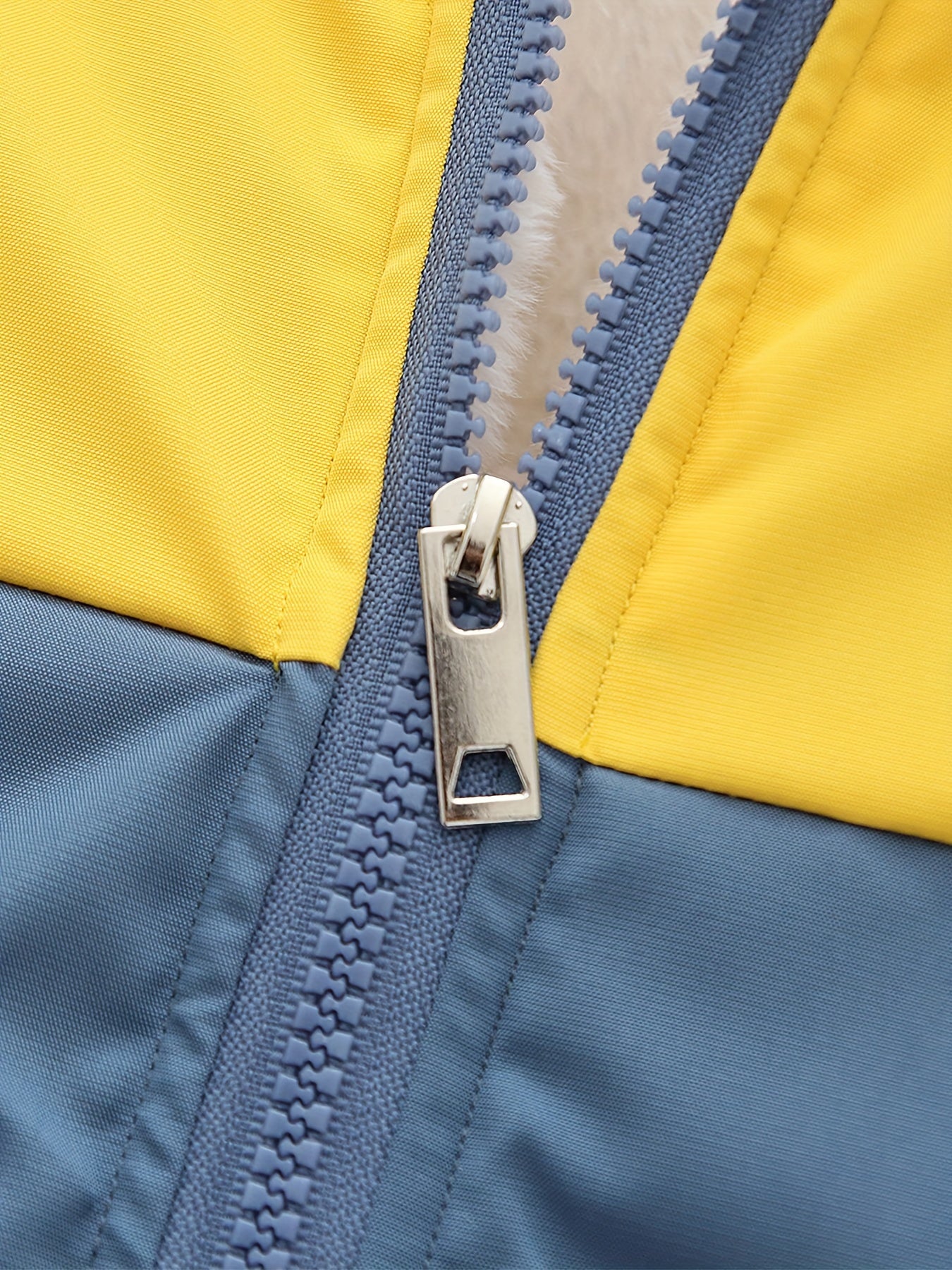 Youngsters' Space Bear Astronaut Hooded Jacket - Cozy Fleece-Lined, Color Block Thick Outerwear with Cute Bear & Moon Print for Boys & Girls - Casual Zip-Up Loose Fit for Fall/Winter